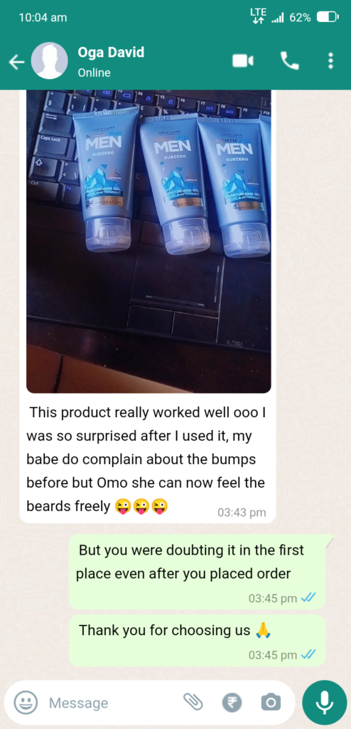 Customer Review: paying before delivery was a breeze and the discount i got was incredible. The entire process was effortless and my products arrived quickly! – Mr David Emmanuel
